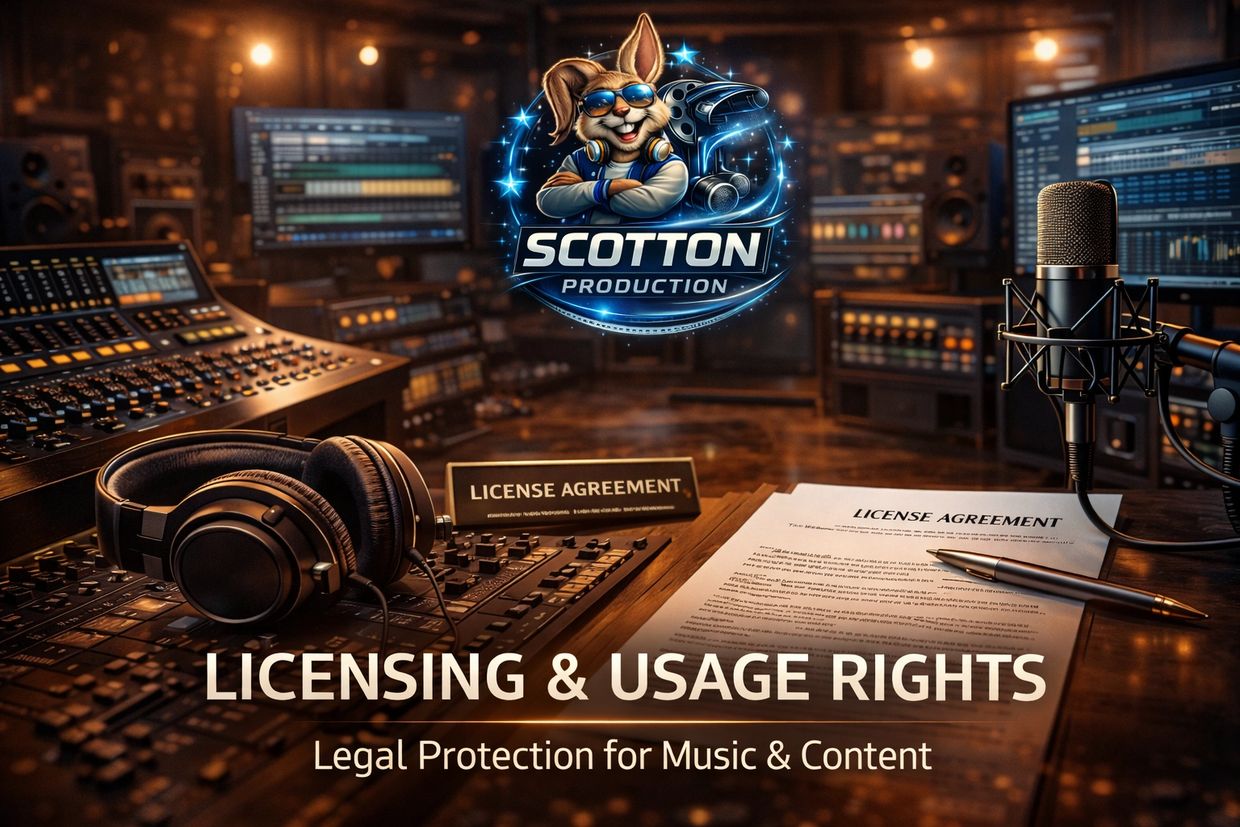 At Scotton Production LLC, all music, lyrics, compositions, sound recordings, and audio content are created as original works and are protected by copyright law.